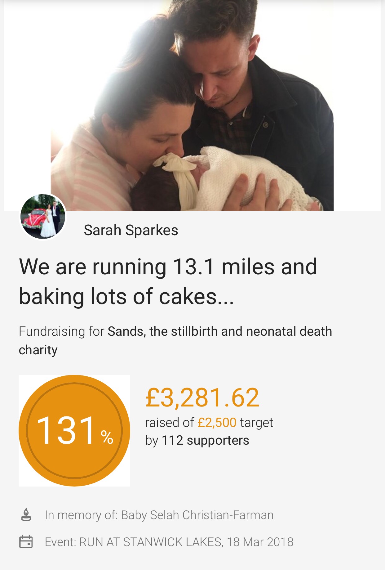 Watch this space as we will also be doing a variety of other fundraisers to support the local SANDS charity who, as you’ve read, have supported us in stunning ways since losing Selah.